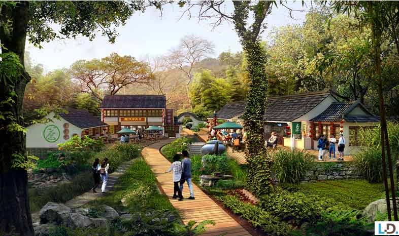 入口服務區:設置游客服務中心、度假酒店、停車場以及相應公共服務設施,打造龍津溪地的門戶形象。